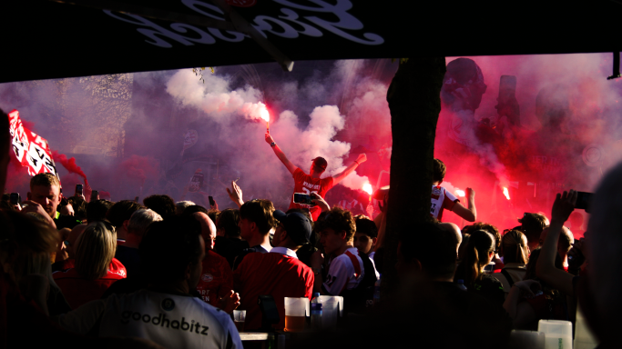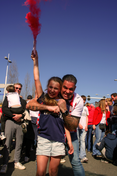 Deze serie laat zien hoe verbondenheid eruitziet in het moment. Tijdens de huldiging van PSV heb ik mensen vastgelegd zoals ze echt zijn — samen, in beweging en onderdeel van iets groters. In de drukte van de stad ontstaan spontane momenten waarin duidelijk wordt hoe sterk mensen met elkaar verbonden zijn, of ze elkaar nu kennen of niet. Het gaat niet alleen om individuen, maar om het gevoel van samen zijn en elkaar versterken.